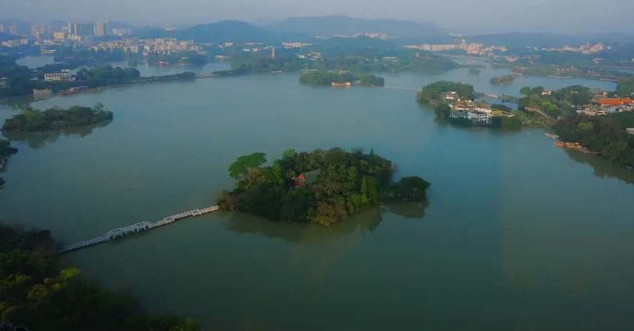 景區(qū)由五湖、六橋、七山、十六景組成。五湖指:平湖、豐湖、南湖、菱湖、鱷湖;六橋指:拱北橋、西新橋、明勝橋、圓通橋、迎仙橋、煙霞橋;十六景指:玉塔微瀾、蘇堤玩月、象嶺云飛、榜嶺春霖、留丹點翠、花洲話雨、紅棉春醉、荔莆風(fēng)清、西新避暑、孤山蘇跡、花港觀魚、飛嶺覽勝、芳華秋艷、豐山浩氣、南苑綠絮、準(zhǔn)堤遠(yuǎn)眺。